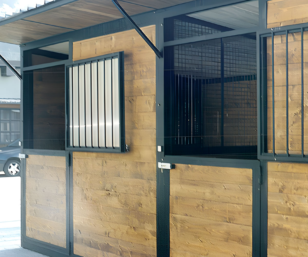 Realizziamobox su struttura metallica rivestita in legno massello da 40 o 60 mm, facilmente trasportabile e rimovibile tramite carrello elevatore o gru.