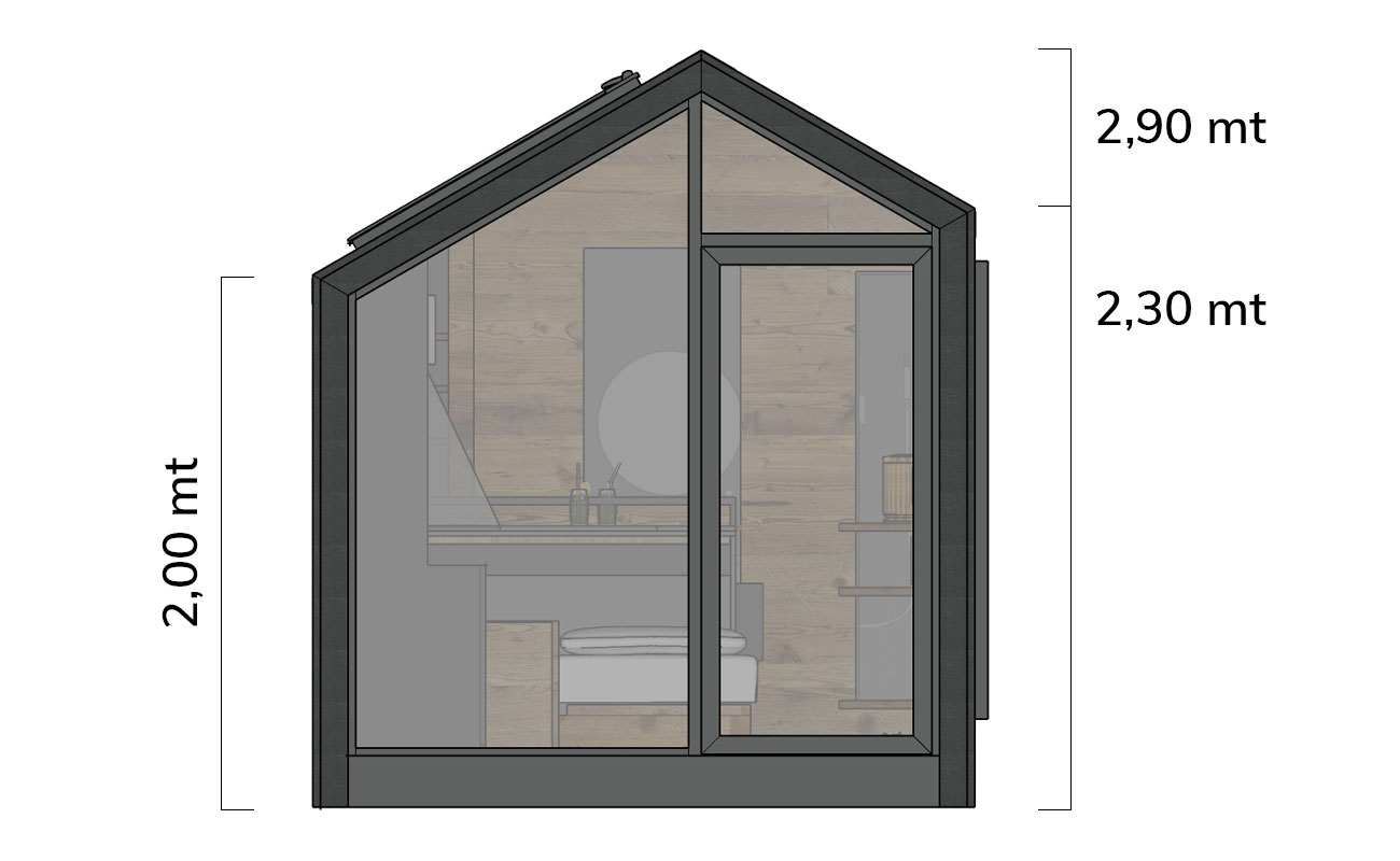 • possibilità di prevedere vasistas a soffitto apribile per dormire sotto le stelle