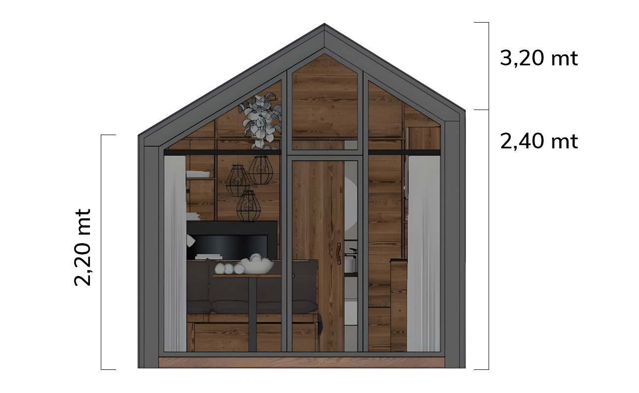 Il rivestimento delle pareti perimetrali esterne e del tetto è realizzato tramite l’applicazione di pannelli prefiniti in alluminio di alta qualità, che si distinguono per durata del materiale resistente sia alla ruggine che alla rottura. Il prodotto è esente da manutenzione.